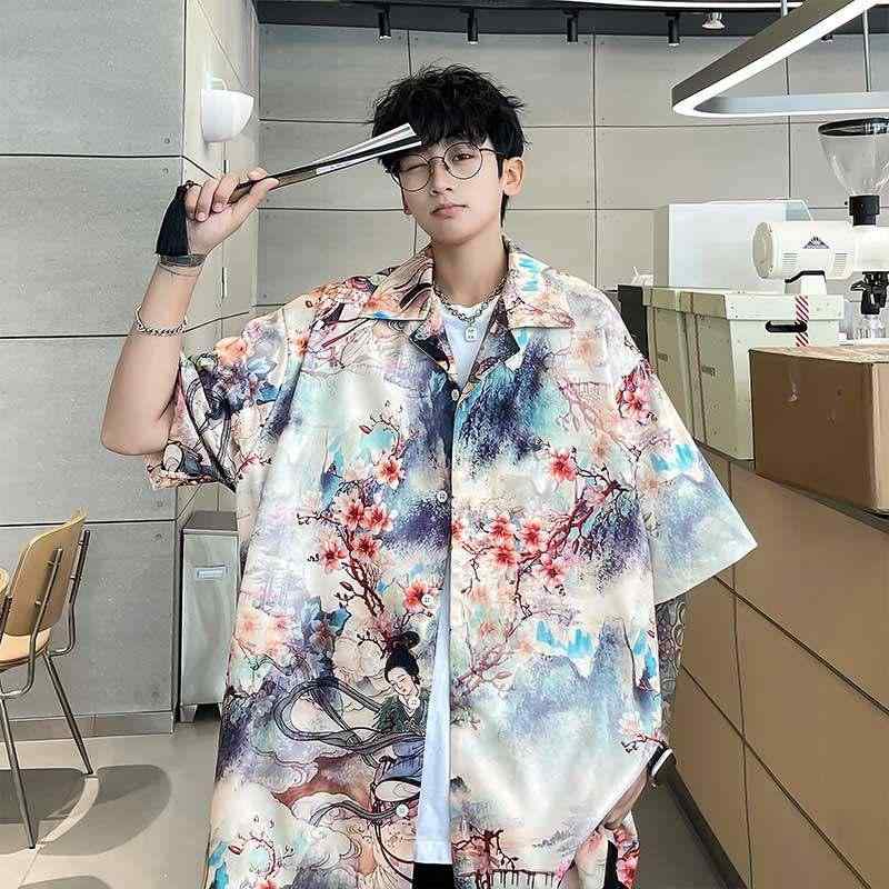 トレンド レトロ ビーチ シャツ 夏 ひんやり 涼しい 快適 半袖 花柄 シャツ ハワイ...