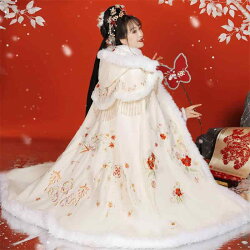 漢服 マント チャイナ風 レディース 冬 白 赤 裏起毛 厚手 暖かい レトロ 襟 ロン...