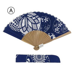 手ぬぐい扇子「伊勢型紙 手毬 濃紺」布製/ケース付き/ギフト/和柄/藍色