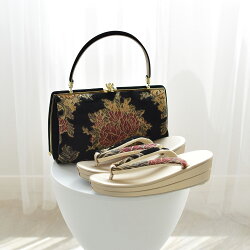 【15%OFF】【ニコアンティーク 草履バッグセット 花の饗宴 】 黒 パイル織物 ベル...