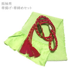 振袖用 帯揚げ帯締めセット No.187 黄緑色 紅色 総絞り 成人式 卒業式 結婚式 訳あ...