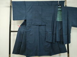 平和屋着物■男性 紬 アンサンブル 濃藍色 正絹 逸品 CAAO5137ev
