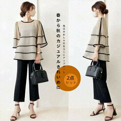 【セットアップ】 2点セット 上下セット パンツ トップス シフォン 半袖 丸ネック ...
