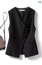 ベスト オフィス レディース 柔らかい おしゃれ 春 シンプル ボタン ショート ウエ...