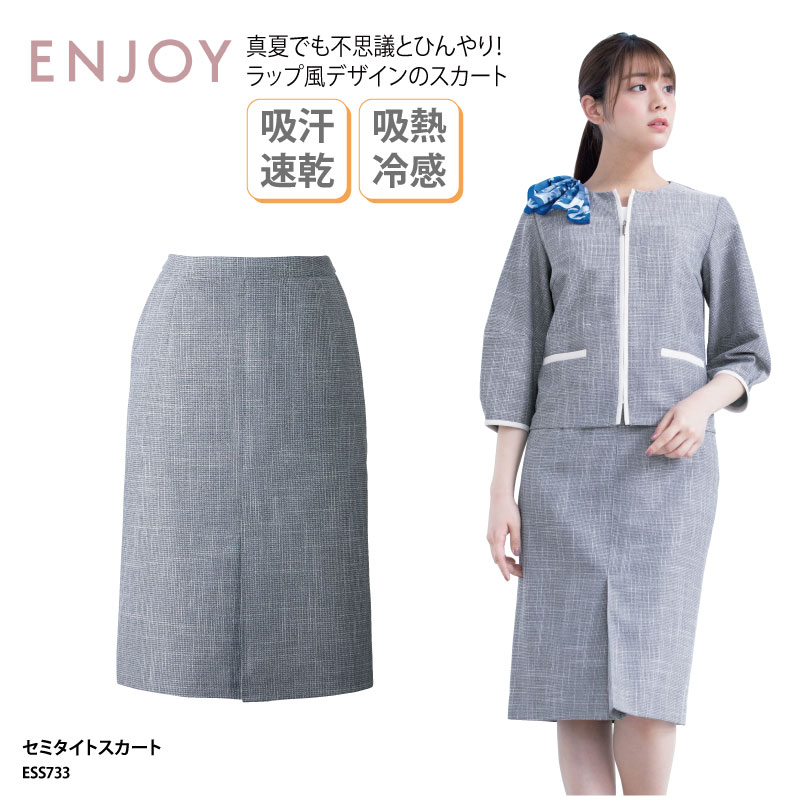 スカート ENJOY セミタイトスカート 膝丈 オフィスウェア ツイード グレー 涼しい ...