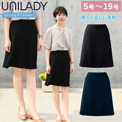 UNILADY Aラインスカート 5号〜19号 U91451 右脇ポケット カーブベルト スプリング...