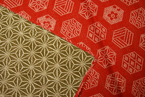 【三巾 3巾 100cm】綿シャンタン 両面染め【亀甲印伝調×麻の葉・エンジ×利休】