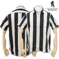 ビアネロ 麻 半袖シャツ 50 LL オフホワイト ブラック ストライプ 244-3572-12-50 ...