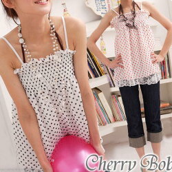 値下げ ミニドットプリント シフォンキャミソール 裾フリルレース 水玉模様 ...