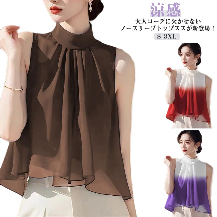 タンクトップ ブラウス プルオーバー ノースリーブシャツ プルオーバー シフォンタ...