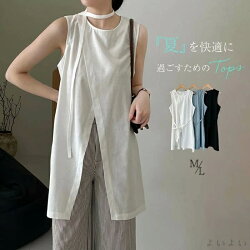 タンクトップ 韓国風 サイドスリット夏服 レディース サマーニット ノースリーブ ...