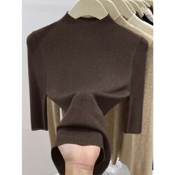 ニット レディース おしゃれ 大人 オフィス トップス 深茶色 5分袖 タイト ハーフ...