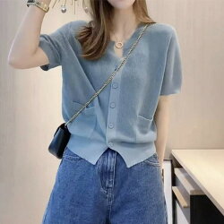 ニット トップス レディース セーター 夏 半袖 涼しい 冷房対策 柔らかい インナー...