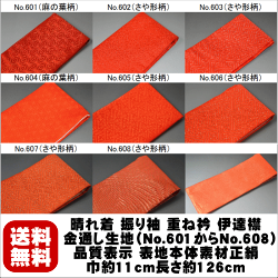 【送料無料】晴れ着 振り袖 重ね衿 伊達襟 金通し生地(No.601からNo.608)品質表...