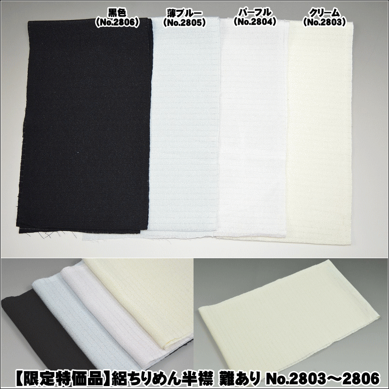 【限定特価品】絽ちりめん半襟 難あり No.2803〜2806 品質表示 ポリエステル100% ...