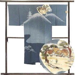 0014 江戸時代の山村の風景文様襦袢 "Juban" 0014 Edo period mountain village la...