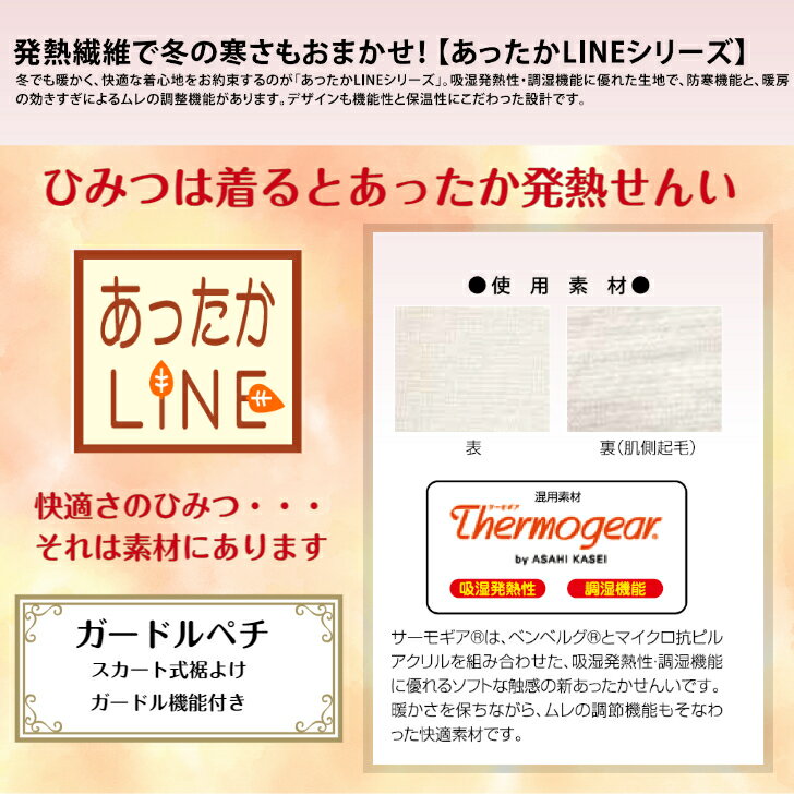【あったかLINE ガードルペチ】発熱繊維〈サーモギア®〉であったかい、あったかLINEシリーズのガードルペチ(スカート式裾よけ ガードル機能付)です。