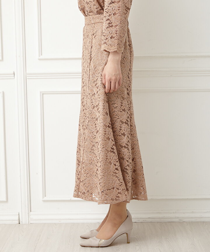商品番号 0373-8-00800 商品詳細 ◆繊細な総レースが上品な華やかさを感じさせるマーメイドラインスカート◆ ウエストから腰にかけてはすっきりと、膝上からフレアを入れたマーメイドラインシルエットがエレガントな印象のレーススカートです。