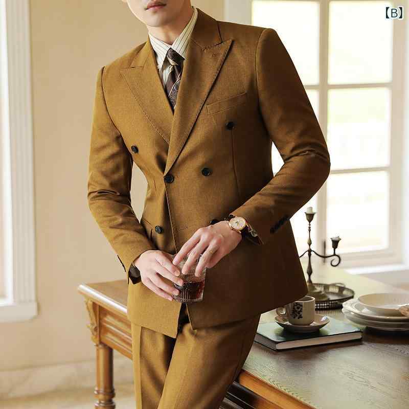 ・スタイル: ビジネスカジュアル・主な素材: アセテート繊維80%・襟型: ピークドラペル・フロント: ダブルブレスト2つボタン・ベント: サイドベンツ・フィット: スリムフィット・厚さ: レギュラー・デザイン詳細: ボタン装飾・加工: 接着芯地・シーン: カジュアル・カラー展開: ダークグリーン、カーキ、ブラック・サイズ展開: M、L、XL、2XL、3XL