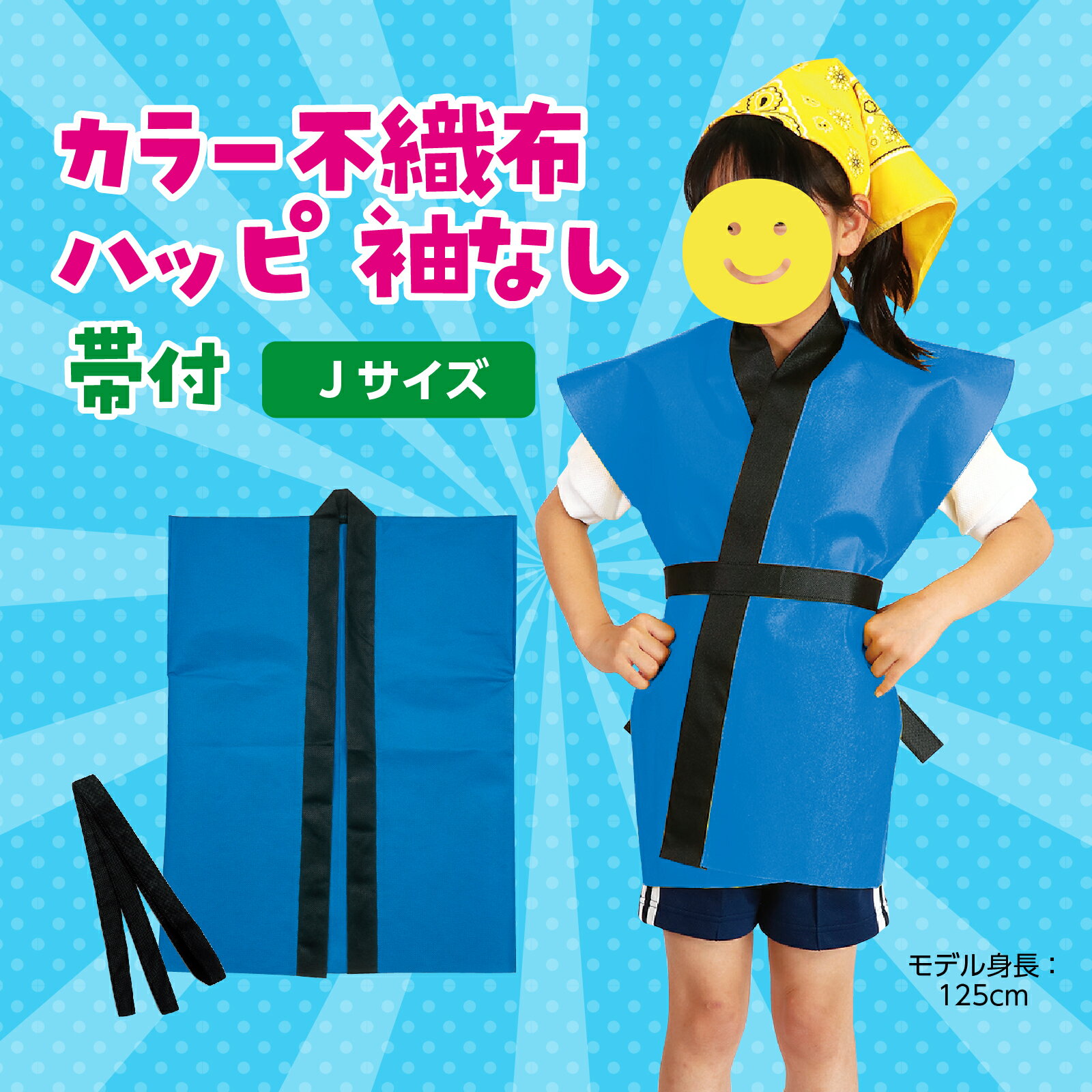 【商品説明】●特長袖なしタイプのカラー不織布ハッピ!帯付●サイズ下記をご覧ください。●材質不織布衣装 法被 半天 応援 幼稚園 保育園 小学校 運動会 イベント 神輿 屋台 お祭り演劇 仮装 コスチューム コスプレ