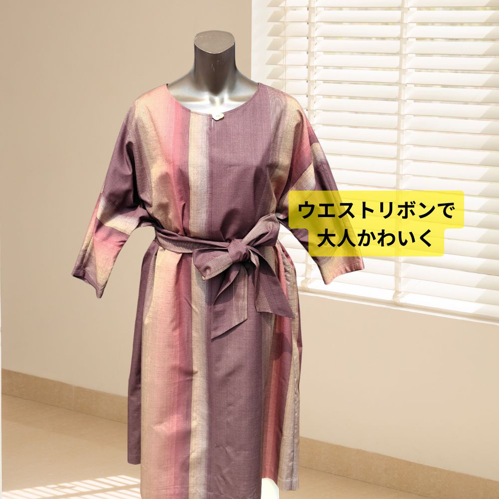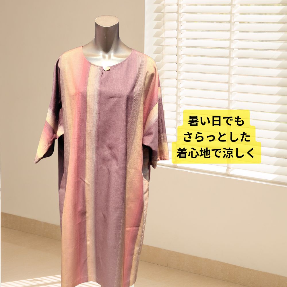 七分丈の着やすいデザインで腕を隠したい方にぴったり!中のインナーを工夫すると一年中着て頂ける便利なワンピースです!下にパンツを合わせて寒い季節にもオシャレなコーデでお楽しみ頂けます!ご自分のご褒美や大切な方へのプレゼントにピッタリです!着られることのない着物をリメイクしてもう一度新たなストーリーを!赤とんぼの着物リメイク品は着物を手作業で丁寧に解いた後、専門のクリーニング店にて生地の状態に戻し当店のスタッフが丁寧に縫製しております。