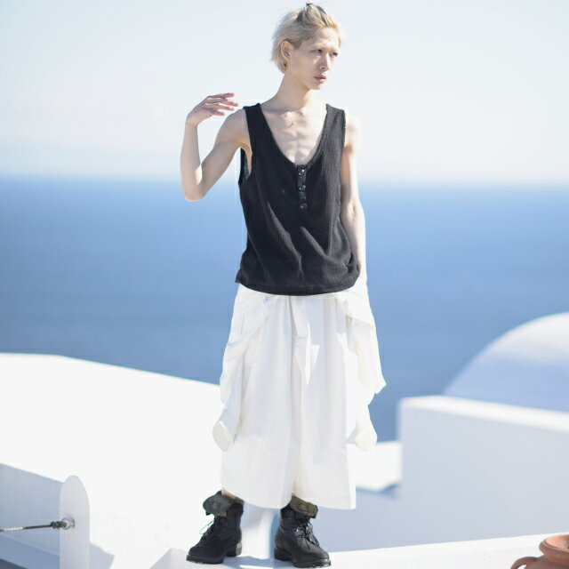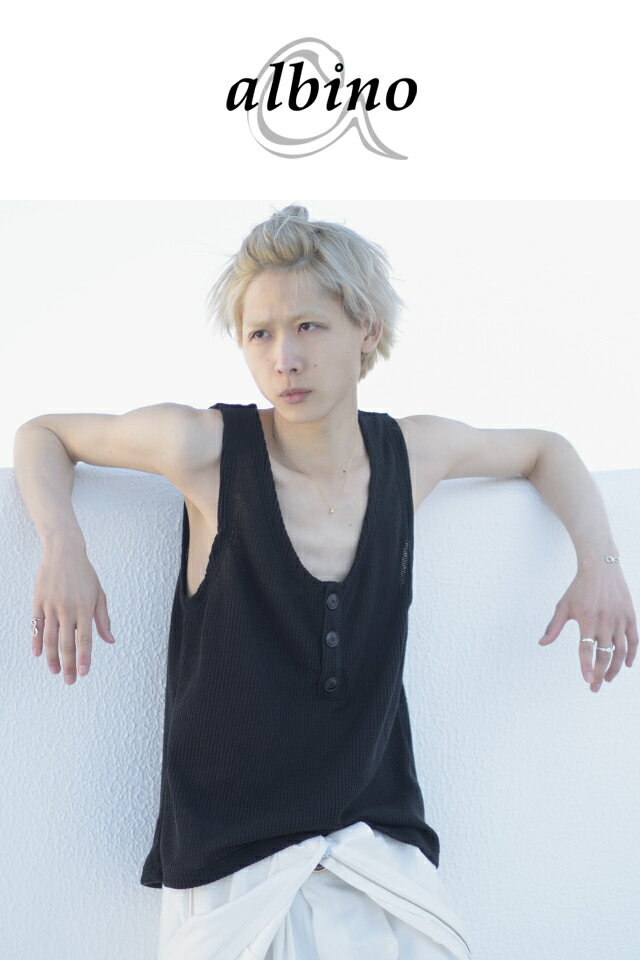 【albino】ヘンリーネック調サマーニットタンクトップタンクトップ メンズ ワイド ヘンリーネック サマーニット モード系 黒 ブラック 個性的 日本製 国産 オリジナル ブランド 中性的 ユニセックス レディース 軽やかな着心地を実現したヘンリーネックのタンクトップ 5