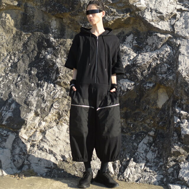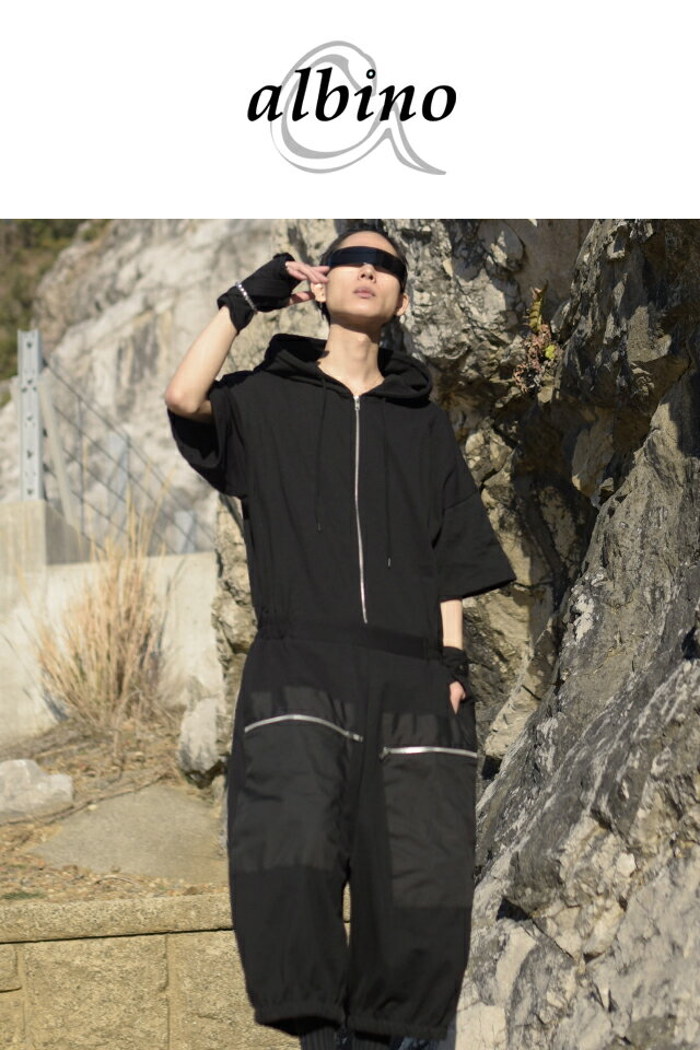 【albino】パーカー×アラジンパンツ一体型オールインワンオールインワン ワンピース メンズ パーカー 作業着 つなぎ モード系 ブラック 黒 個性的 日本製 国産 オリジナル マキシ丈 中性的 ユニセックス レディース パーカーとアラジンパンツを一体化させたオールインワン 5