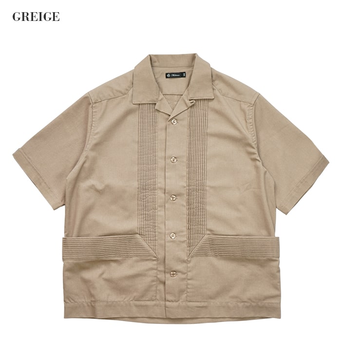 【Audience|オーディエンス】AUD6642綿麻ビンテージキャンバス ピンタック ハーフスリーブ オープンカラーシャツ キューバシャツをモチーフにした、オープンカラーのピンタックシャツ。