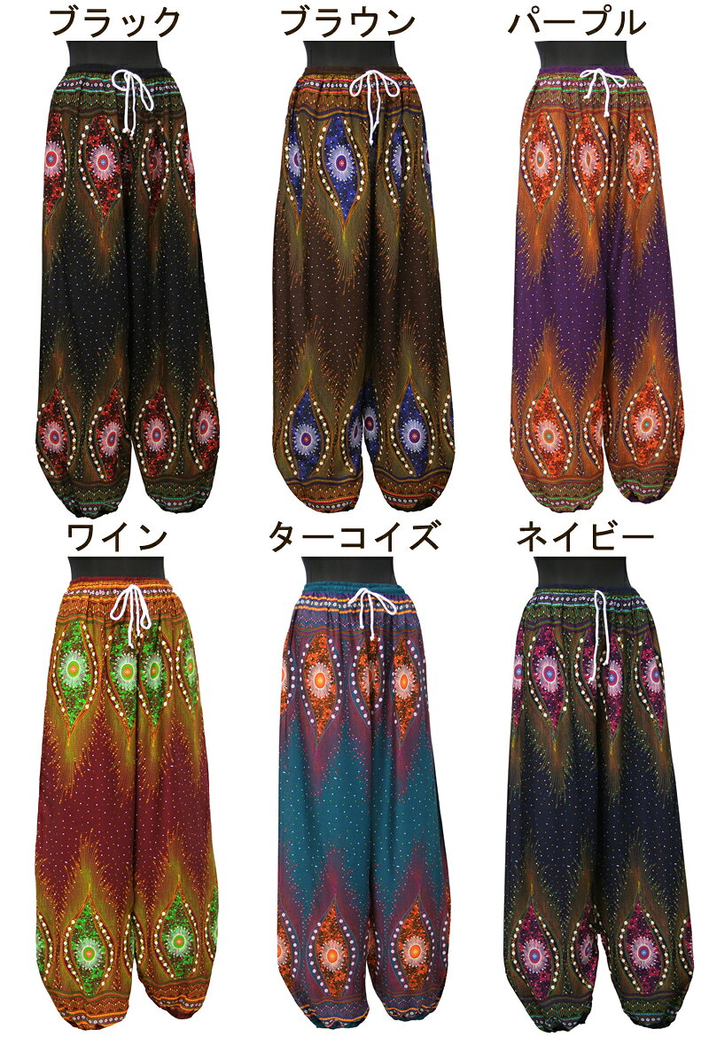 ■カラフルなピーコック柄が個性あふれるアラジンパンツです。