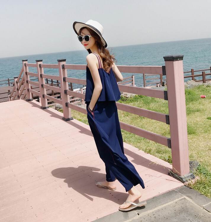 セットアップ レディース セット 2点セット ツーピース XS S M L XL ネイビー 紺 大人カラー 無地 春 夏 トップス キャミソール ノースリーブ サスペンダー ショート丈 ショート ボトムス パンツ ワイドパンツ ウエストリボン ハイウエスト ゆったり ルーズ 体型カバー スタイルアップ 着やせ フェミニン ナチュラル 大人 大人可愛い きれいめ きれカジ カジュアル 上品 クール スタイリッシュ 万能 定番 着回し シンプル ベーシック こなれ感 ぬけ感 存在感 主役級 韓国 オルチャン