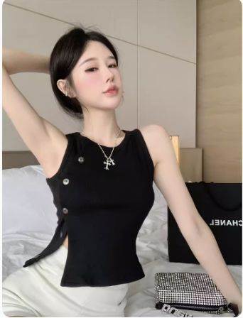 トップス レディース タンクトップ キャミソール ノースリーブ クロップド丈 ショート丈 クルーネック ラウンドネック インナー アシンメトリー ボタン 大人可愛い きれいめ シンプル カジュアル 大人 おしゃれ お洒落 かっこいい こなれ感 クール セクシー 存在感 抜け感 S M L アイボリー 白 ブラック 黒 無地 春 夏 秋 10代 20代 30代 40代 学生 デート お出かけ 部屋着 ルームウエア お泊り 女子会 休日 運動 ジム ヨガ イベント リゾート 韓国 オルチャン 着回し 重ね着