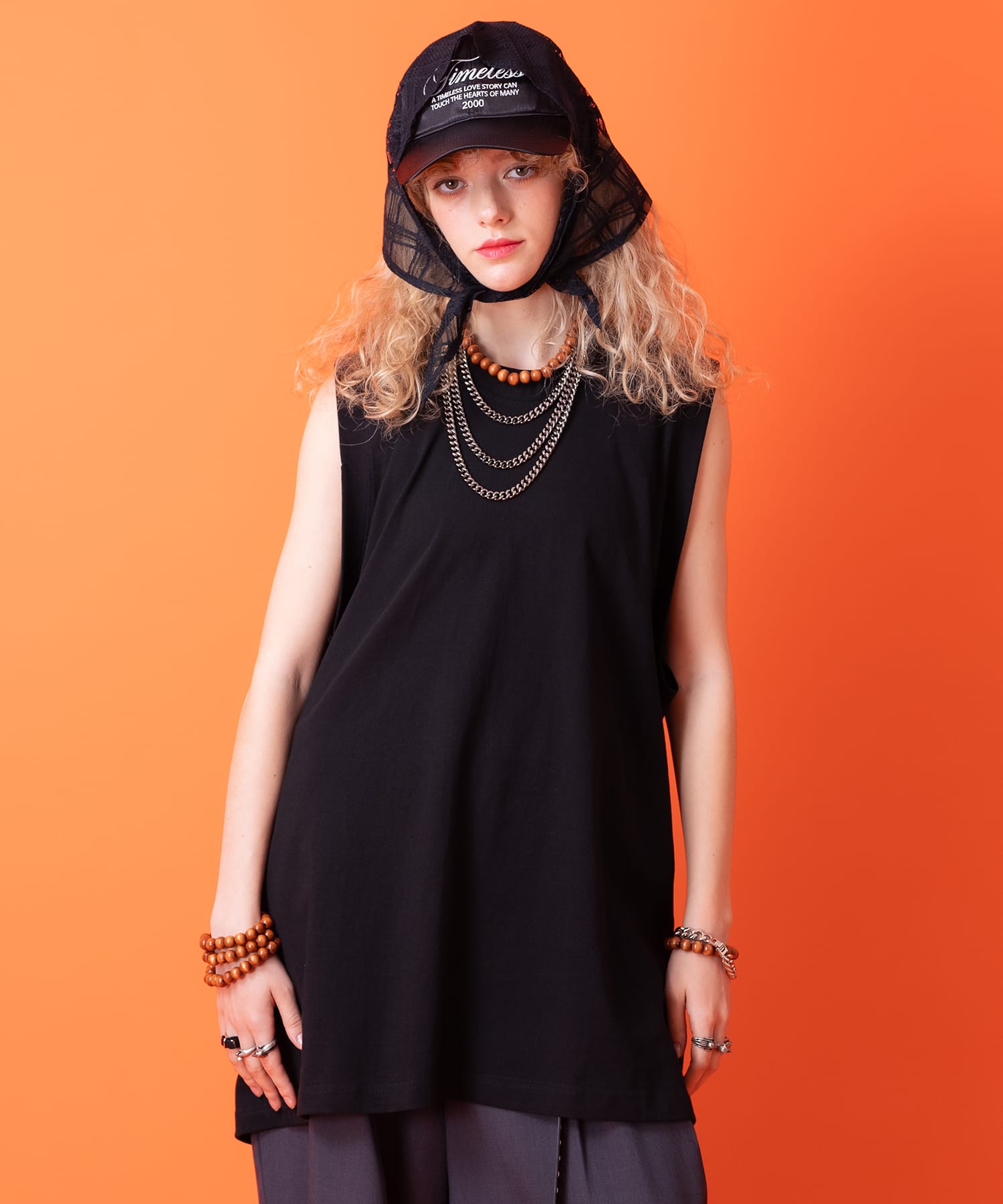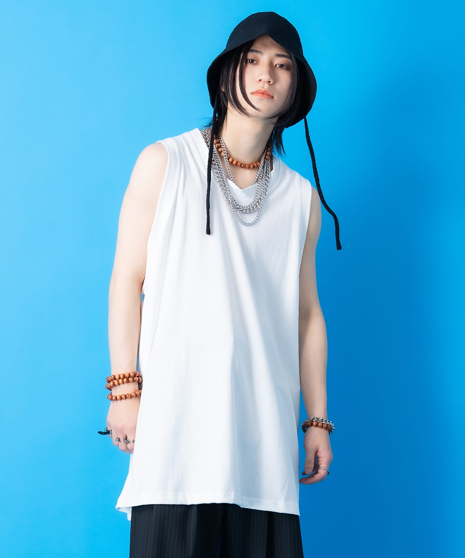 スーパーオーバーサイズUネックタンクトップ / ノースリーブ メンズ レディース ユニセックス コットン 無地 ビッグシルエット カットソークラシカルなコットン100%素材×定番のノースリーブ/タンクトップスタイル。