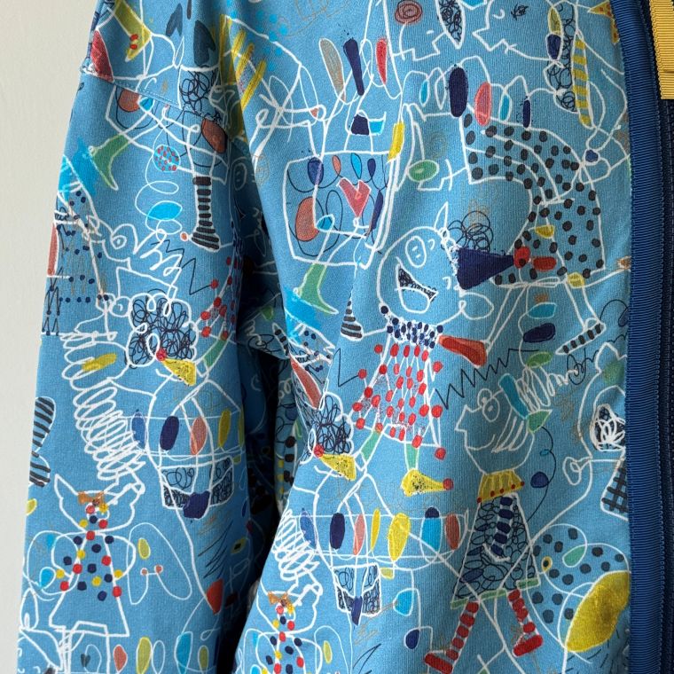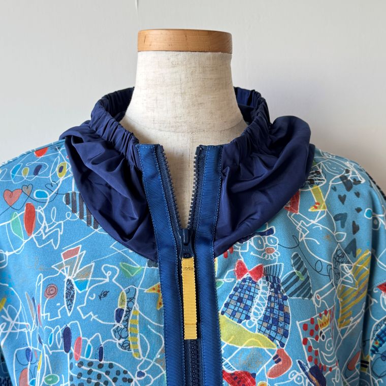 カラフルで可愛いプリントが、秋のコーディネートのアクセントになること間違いなし!秋のレジャーやスポーツの際のアウターとして、冬はコート下の防寒アイテムとしてお勧めですよ~。
