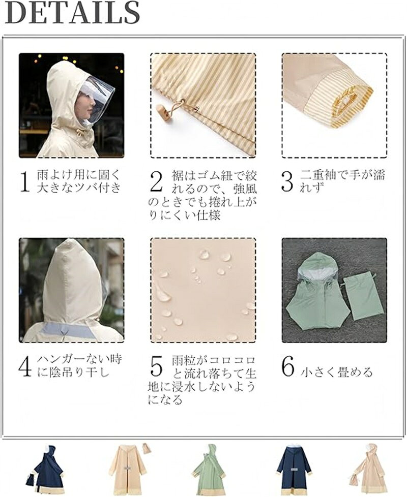 【デザイン】 1.雨よけの丈夫なツバが付いており、顔を守ります! 2.裾はゴムで締めているので、強風でもめくれ上がりにくいです。