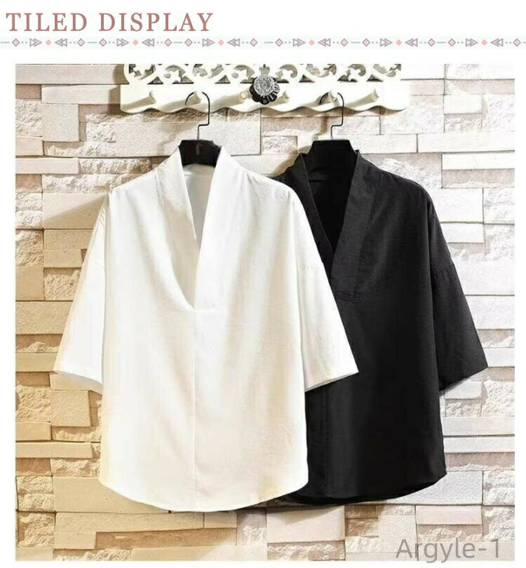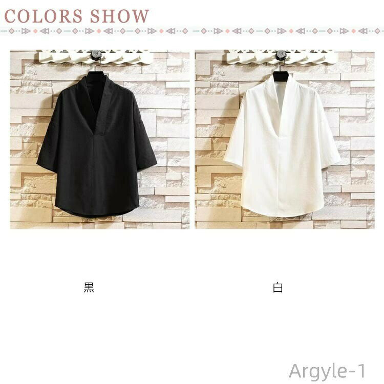 着物や作務衣、甚平、浴衣などのインナーとして着用いただける衿付きの男性用トップスです。