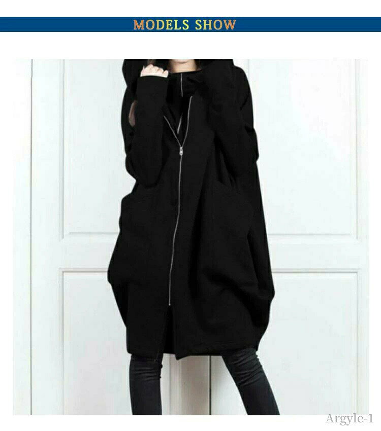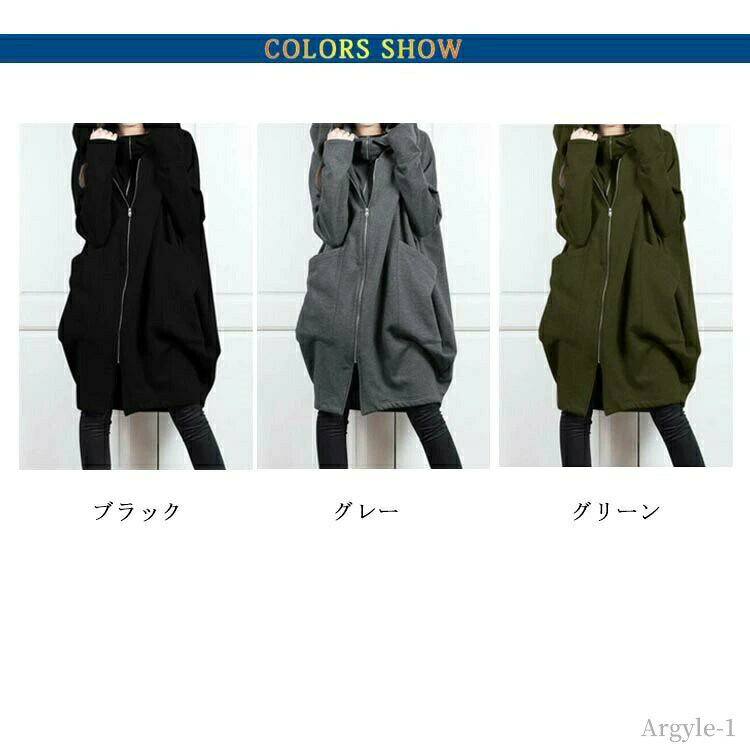 体型カバー~ジップアップロング丈パーカー 無駄な装飾はせず、シンプルで日常使いしやすいデザイン。
