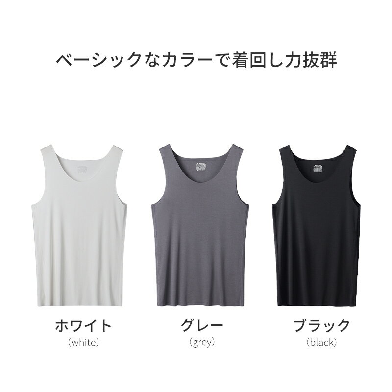■一枚としてもインナーとしても、快適に着られるモダールタンクトップ ベーシックなカラーで着回し力抜群 上質なモダール混素材を使用し、柔らかめの肌触りで着心地抜群。