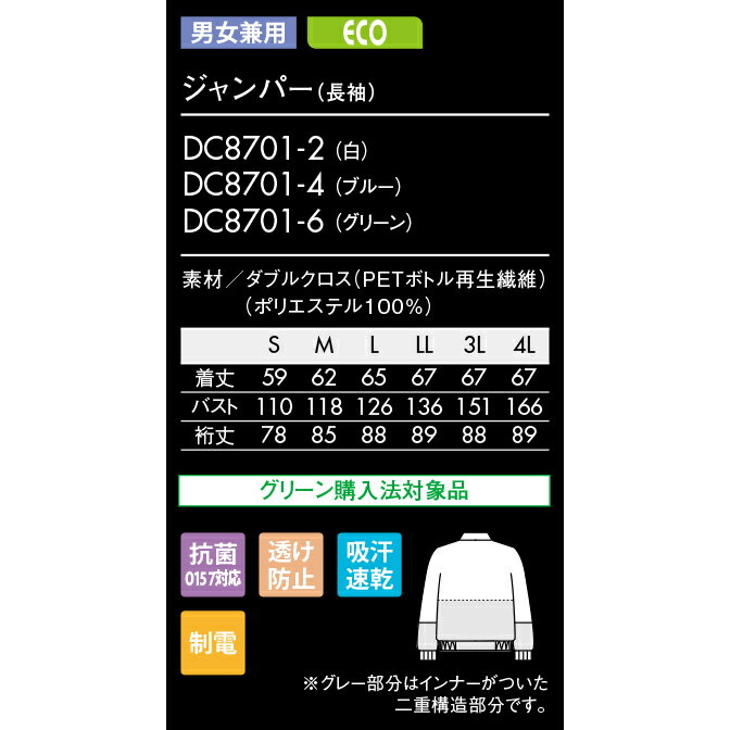 メーカーモンブラン素材ポリエステル100%生地ダブルクロス(PETボトル再生繊維)カラー白ブルーグリーンサイズS,M,L,LL,3L,4L機能抗菌加工,透け防止,吸汗速乾,制電仕様<注意事項>画面上と実物では多少色具合が異なって見える場合もございます。