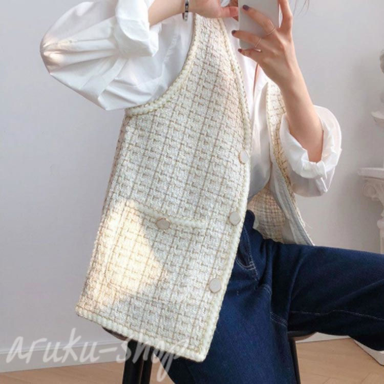 今年らしいツイードのジレは1枚で華やかさをプラス出来るアイテムです。