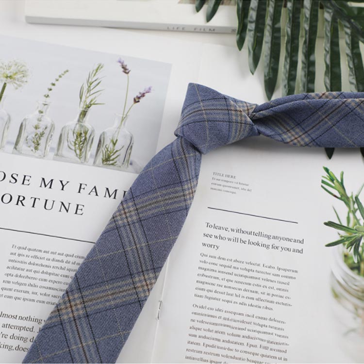 細身のネクタイは男女共に使えるデザイン!綿の生地で作られているため、身につけても触っても心地よく、長年使えます。