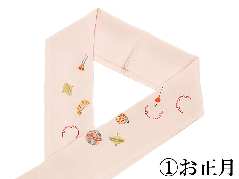 雪輪に毬・鈴・駒・簪や櫛などお正月を連想させるアイテムが染められた「お正月」。