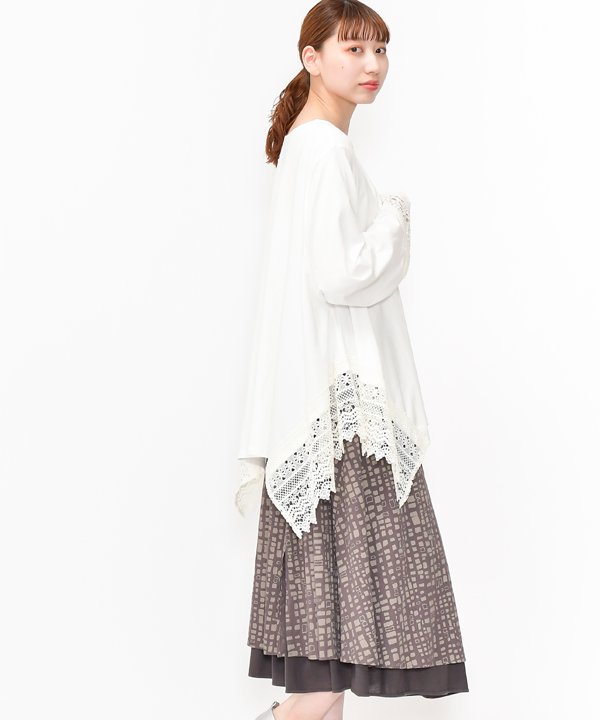 1枚で着て頂けるのはもちろん シャツなどを羽織って袖口と裾のレースをチラ見せしても可愛く着て頂けます。