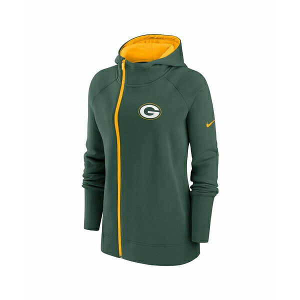 ■商品名 Women's Green Green Bay Packers Asymmetrical Raglan Full-Zip Hoodie