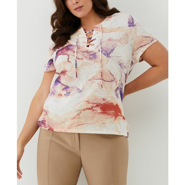■商品名 Plus Size Eco Watercolor Print Lace-Up Short Sleeve Tee Shirt