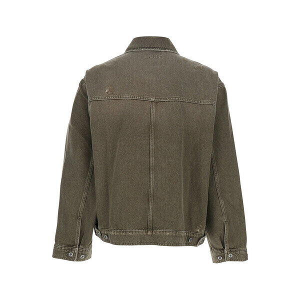 ■商品名 Green Jacket With Classic Collar And Logo Plaque On The Front In Denim Man