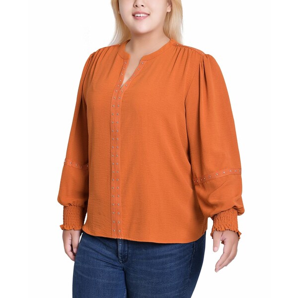 ■商品名 Women's Plus Size Long Sleeve Studded Blouse Top