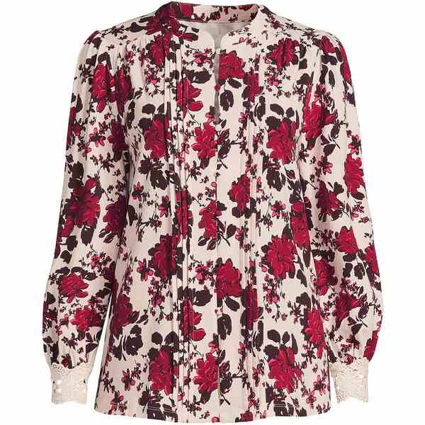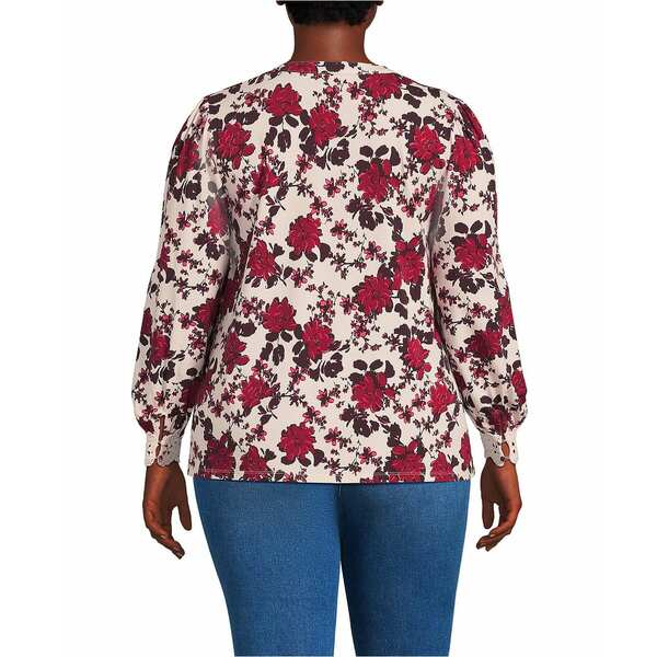 ■商品名 Plus Size Lightweight Jersey Long Sleeve Button Front Pintuck Top