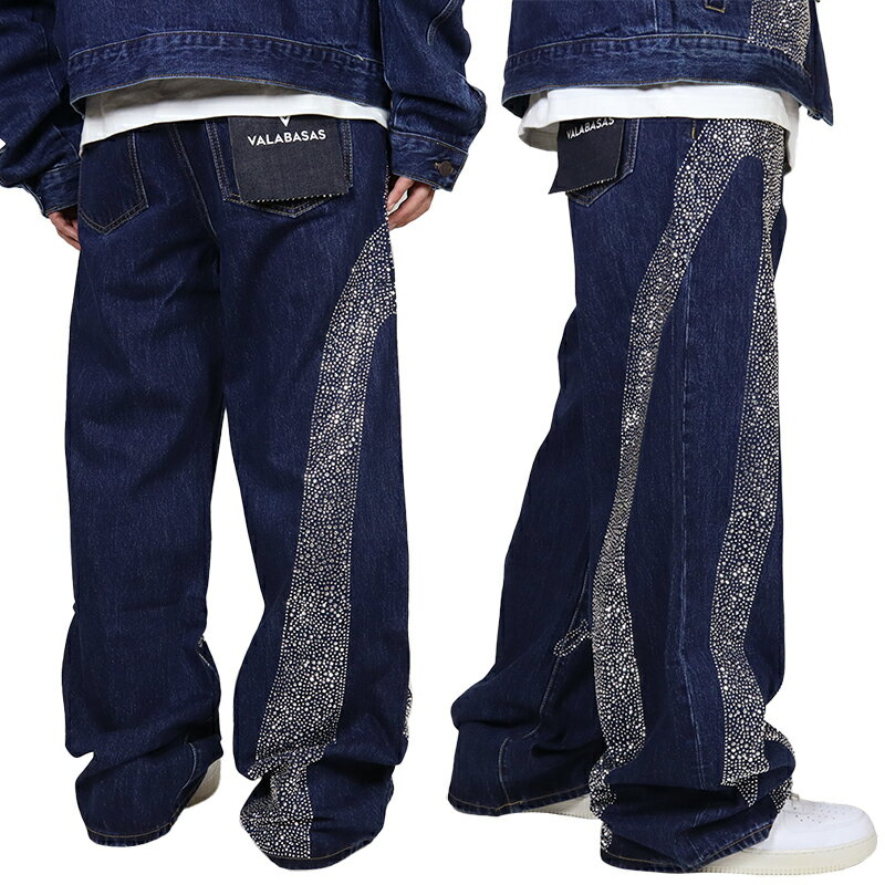 【唯一無二こだわりのデザイン ラインストーンバギーデニム】 VALABASAS バラバサス から展開する「SCRIPTED DENIM BLUE BAGGY」。
