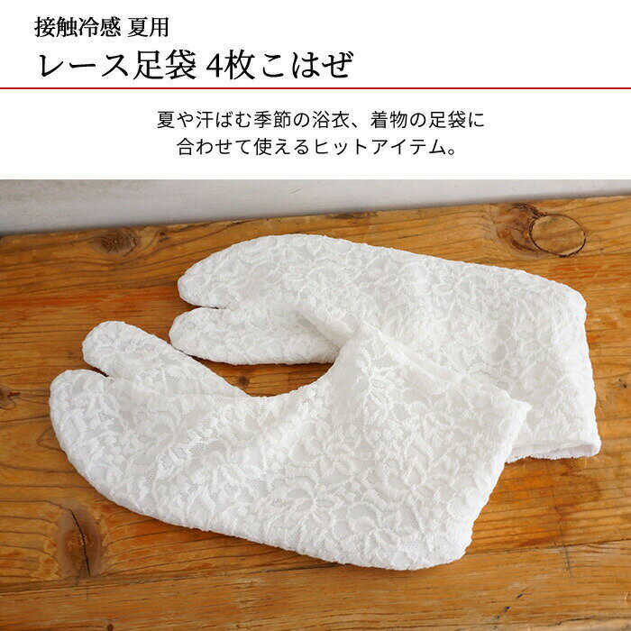 【接触冷感 夏用 レース足袋 4枚こはぜ】夏や汗ばむ季節の浴衣、着物の足袋に合わせて使えるヒットアイテム。