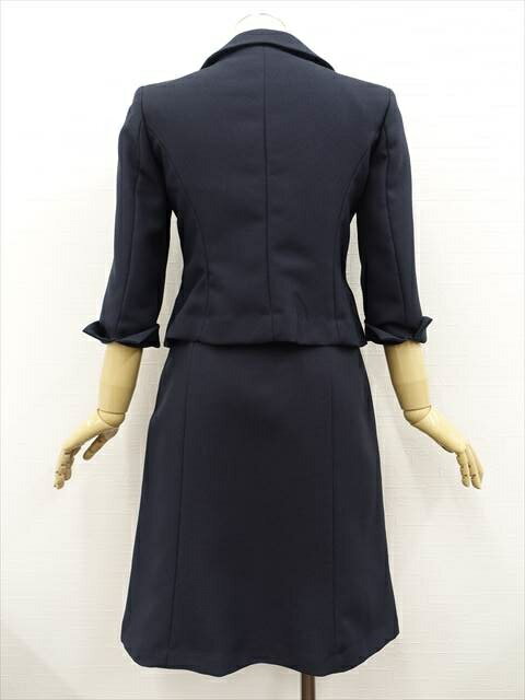 【裏生地】ポリエステル 100% 色・柄ネイビー備考欄-不備・汚れ等-状態ランクA管理番号250421-74-E美品 FESMY 七分袖テーラードジャケット+ひざ丈台形スカート スカートスーツ上下2点セット 7YR ネイビー